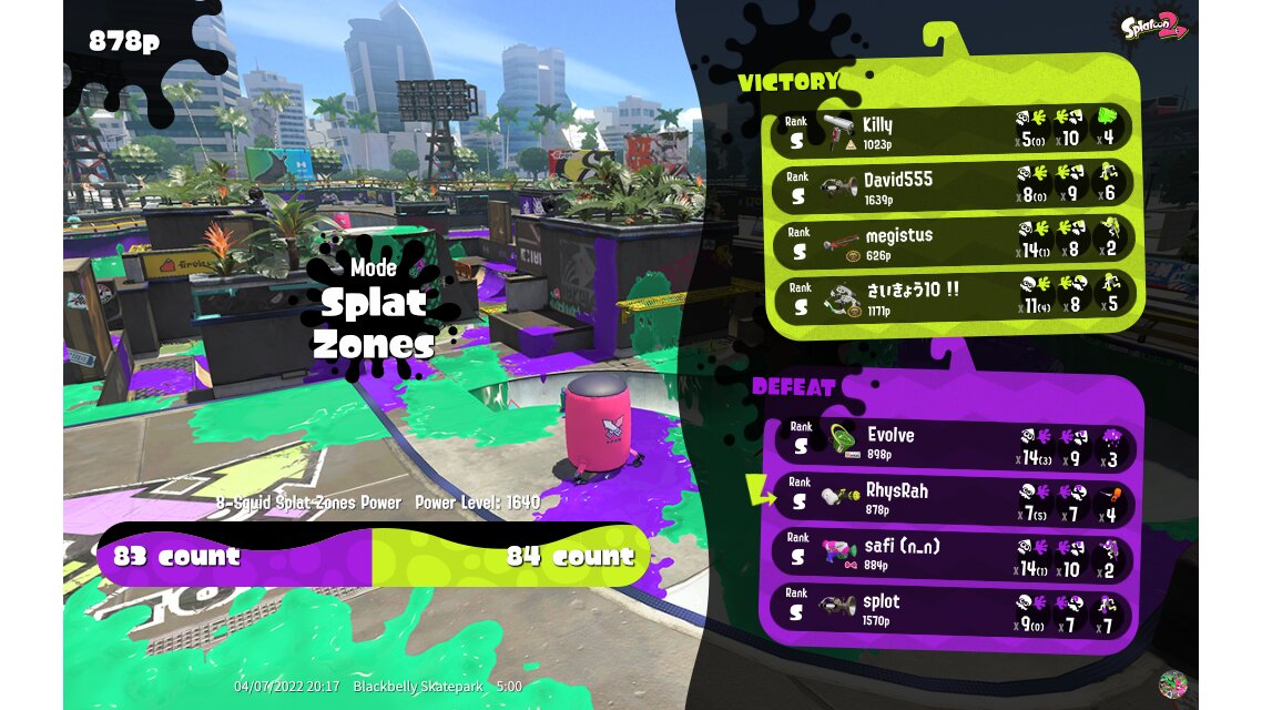| Mode | Splat Zones - Ranked Battle | |||||||||||||||||||||||||||||||||||||||||||