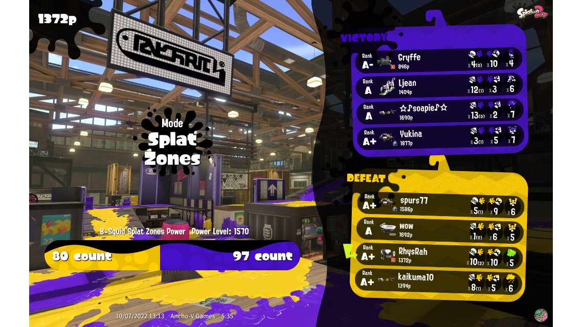 | Mode | Splat Zones - Ranked Battle | |||||||||||||||||||||||||||||||||||||||||||