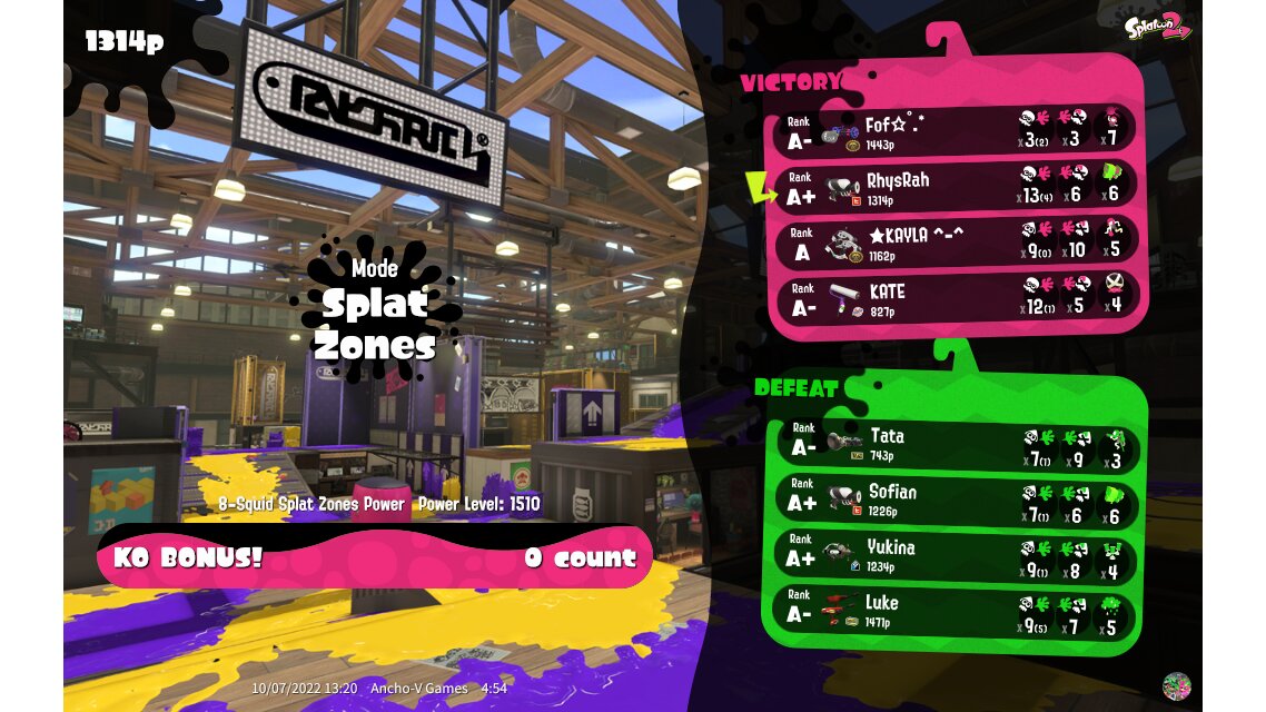 | Mode | Splat Zones - Ranked Battle | |||||||||||||||||||||||||||||||||||||||||||