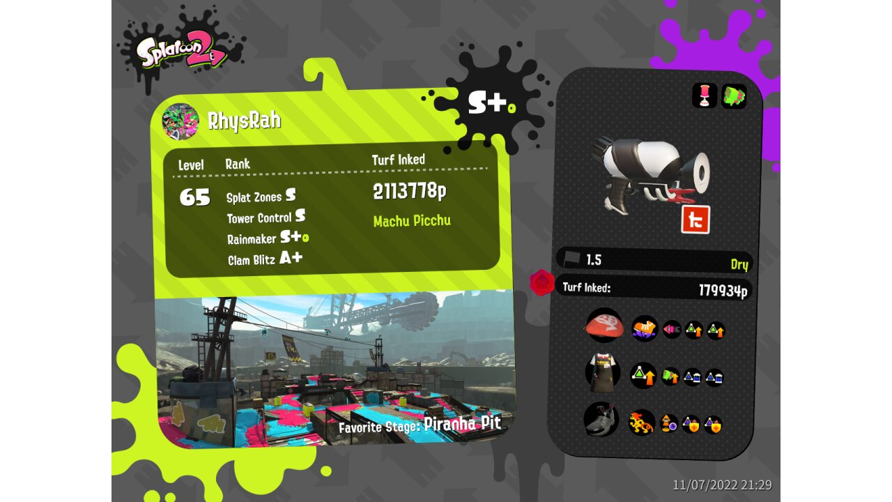 | Name | Weapon | Level | Rank | Inked | k+a/sp | k/d |