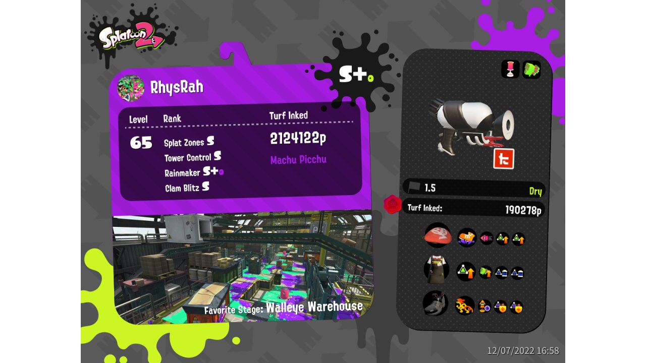 | Name | Weapon | Level | Rank | Inked | k+a/sp | k/d |
