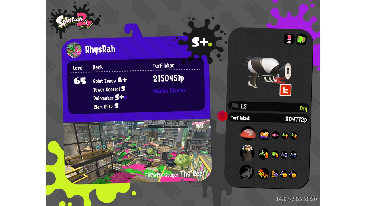 | Name | Weapon | Level | Rank | Inked | k+a/sp | k/d |