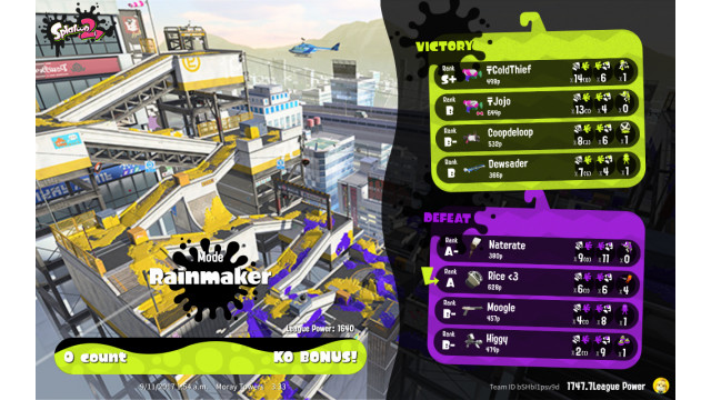 | Name | Weapon | Level | Rank | Inked | k+a/sp | k/d |