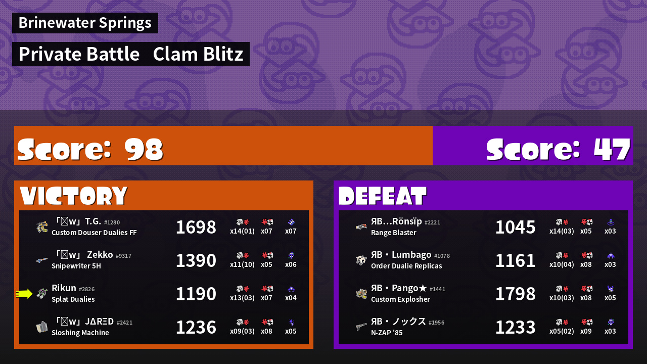 Kills / Deaths | 10 + 3 / 7 > Kill Ratio: 1.43 | ||