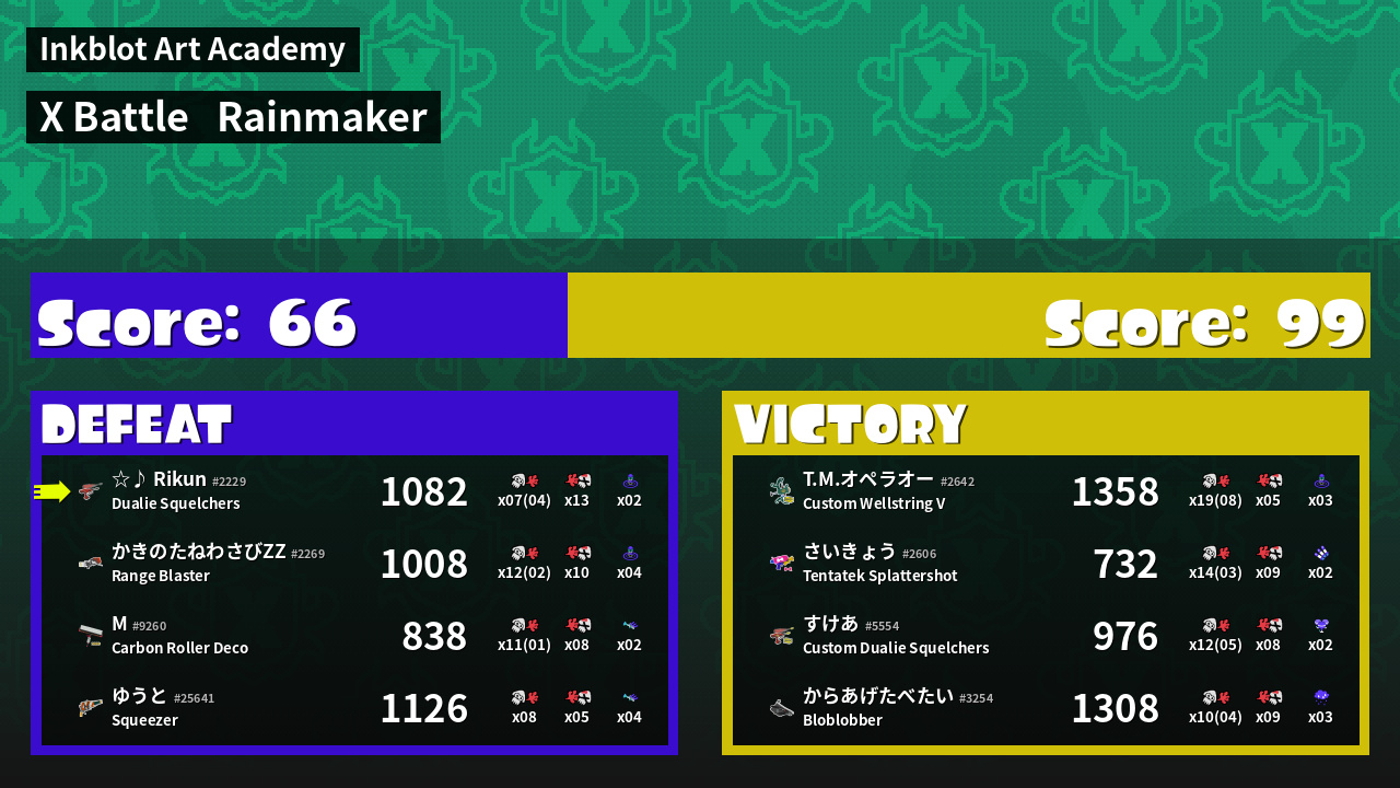 | Mode | Rainmaker - X Battle | ||