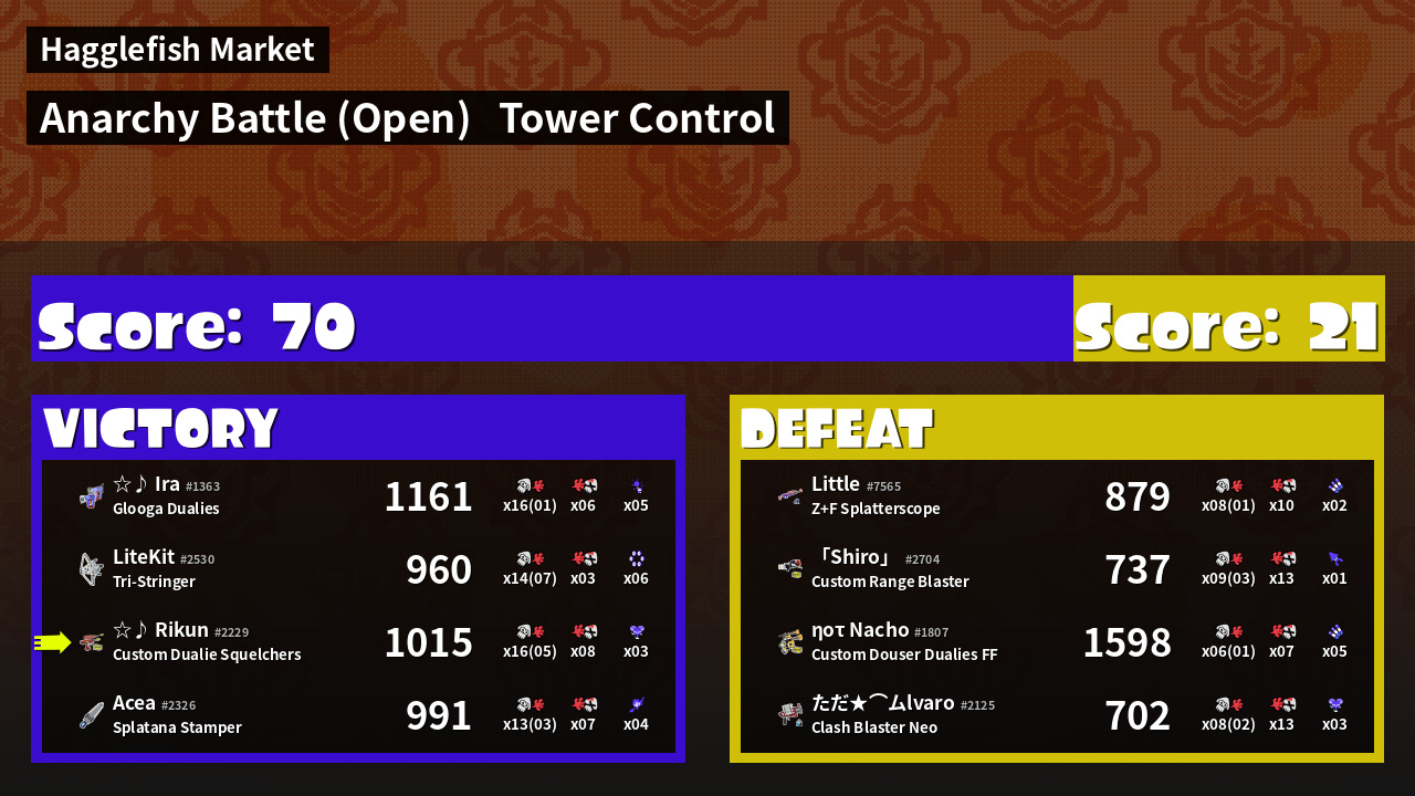 Name | Weapon | Inked | ![]() |