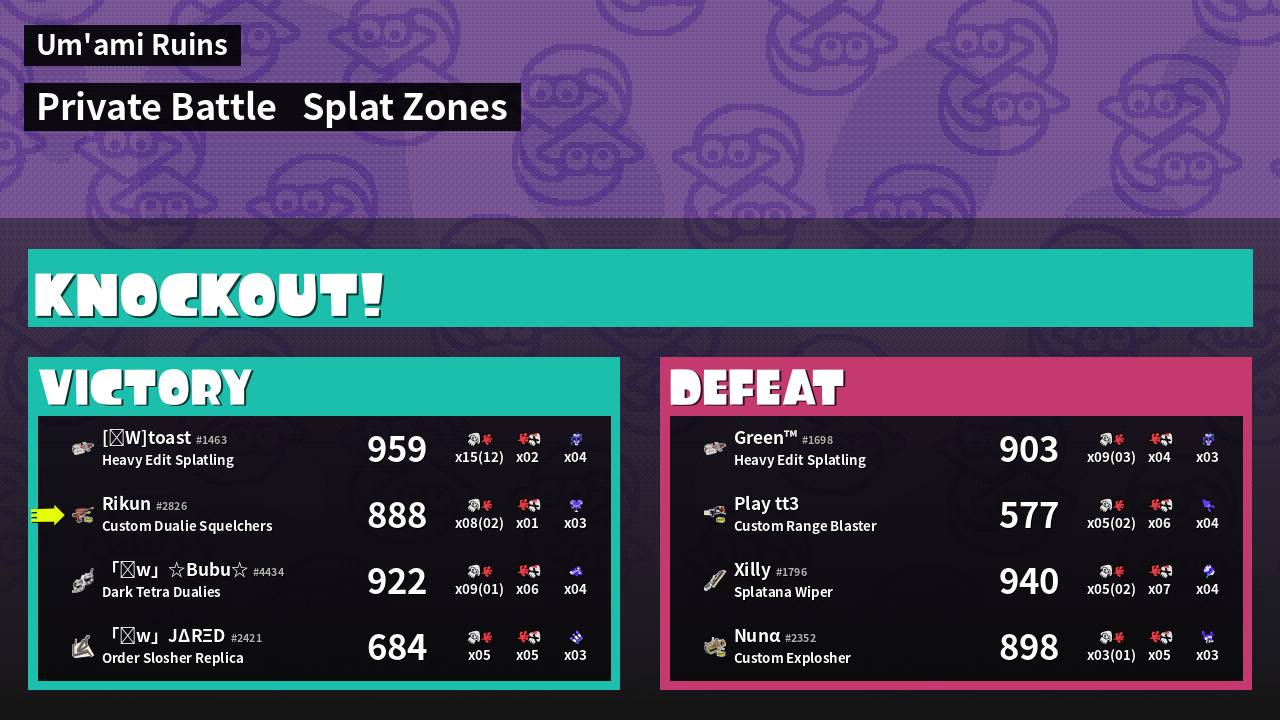 Kills / Deaths | 6 + 2 / 1 > Kill Ratio: 6.00 | ||