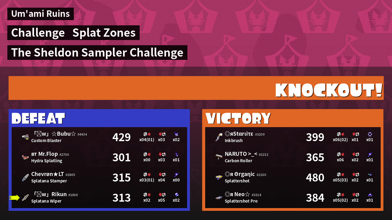 | Medals | #1 Ink Consumer #2 Popular Target #2 Enemy Splatter | ||