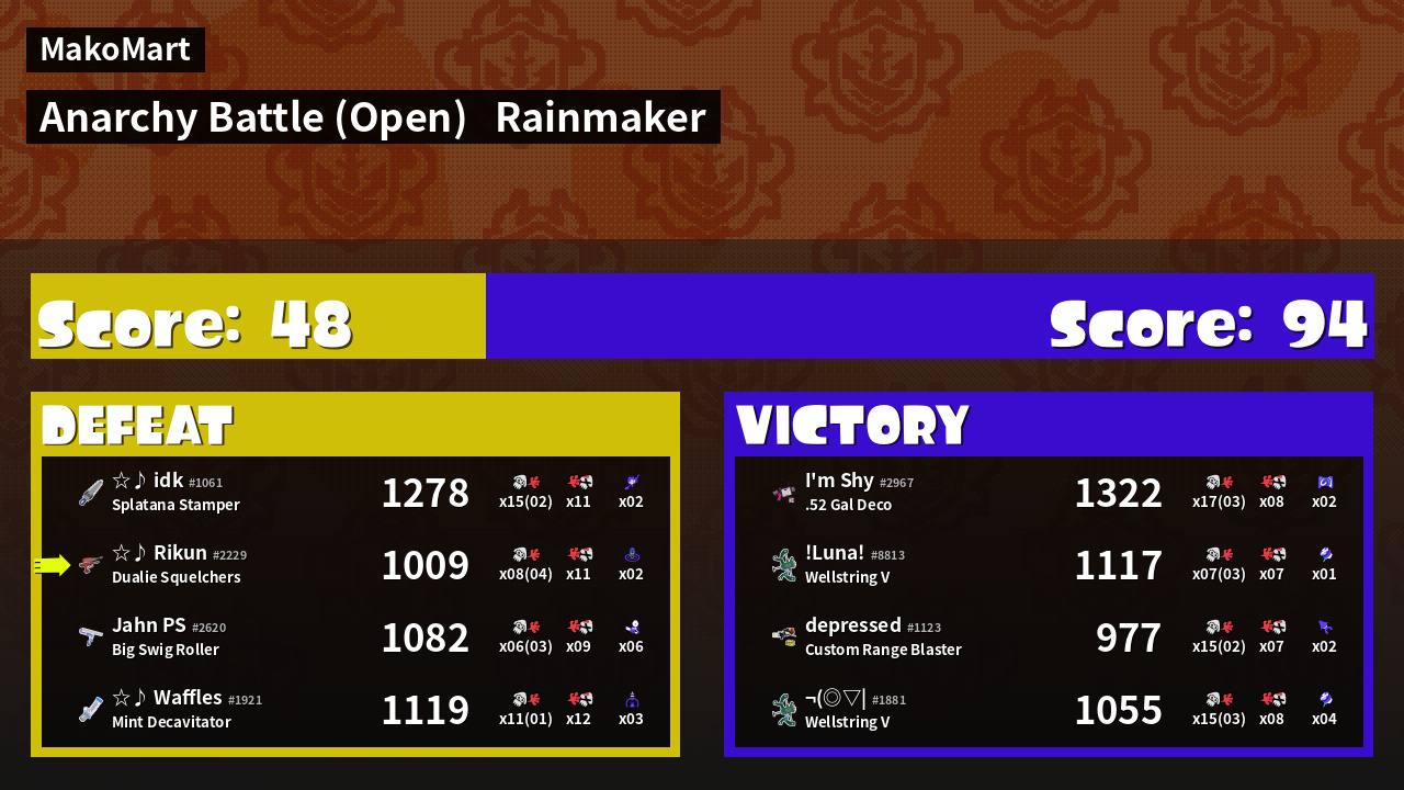 | Mode | Rainmaker - Anarchy Battle (Open) | ||