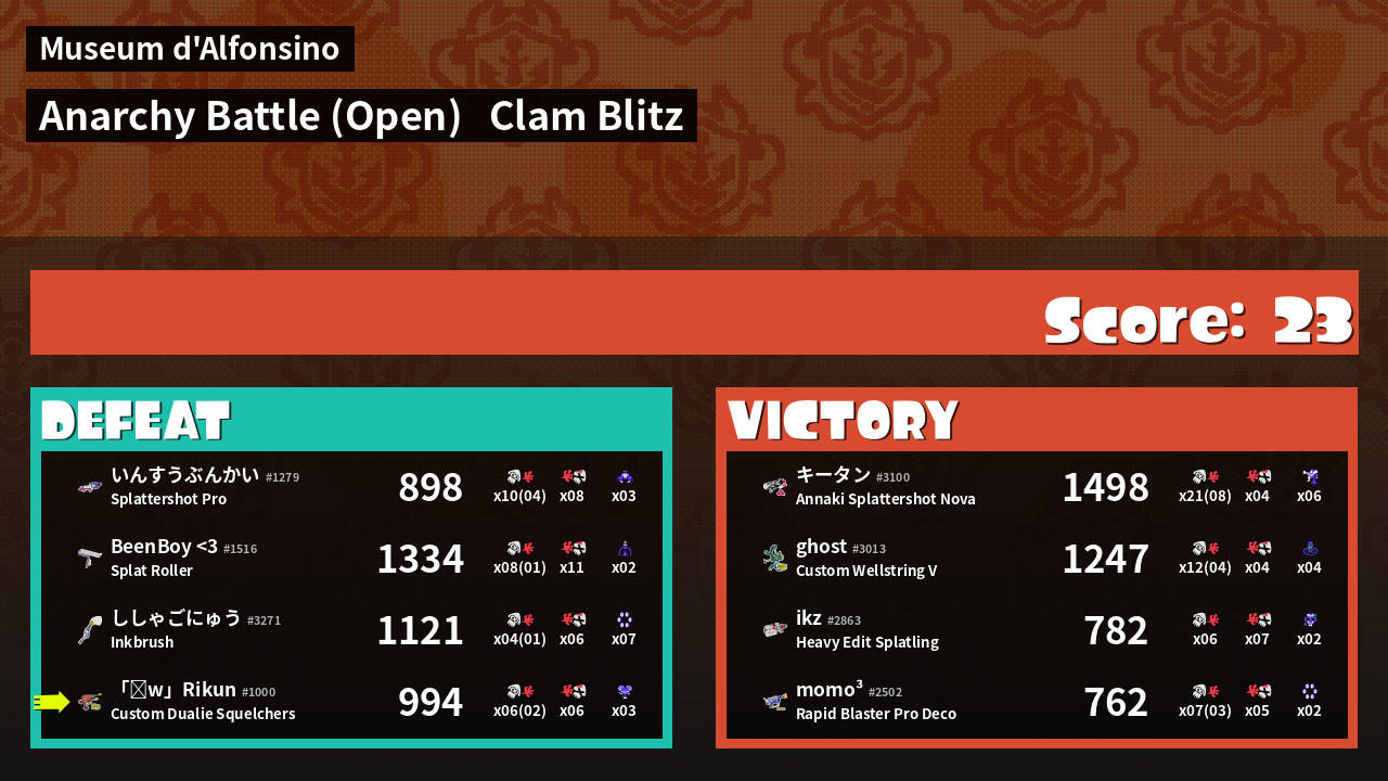 Result | Defeat Time is up | ||