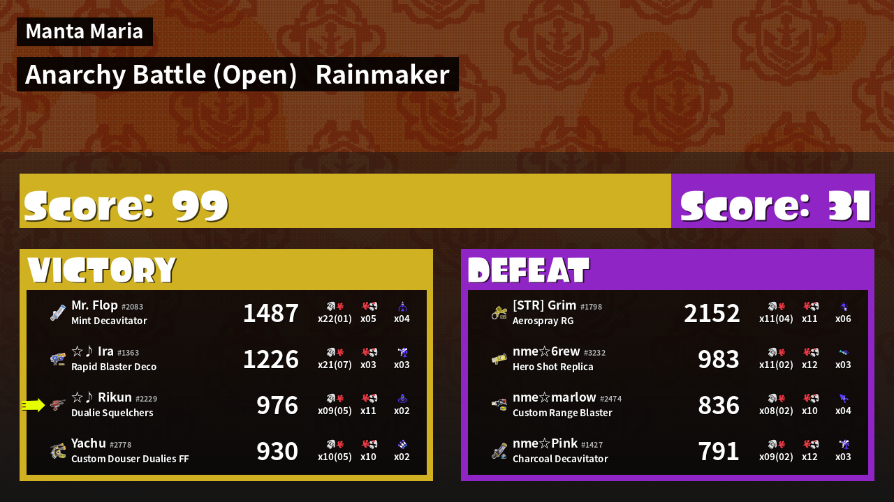 | Mode | Rainmaker - Anarchy Battle (Open) | ||