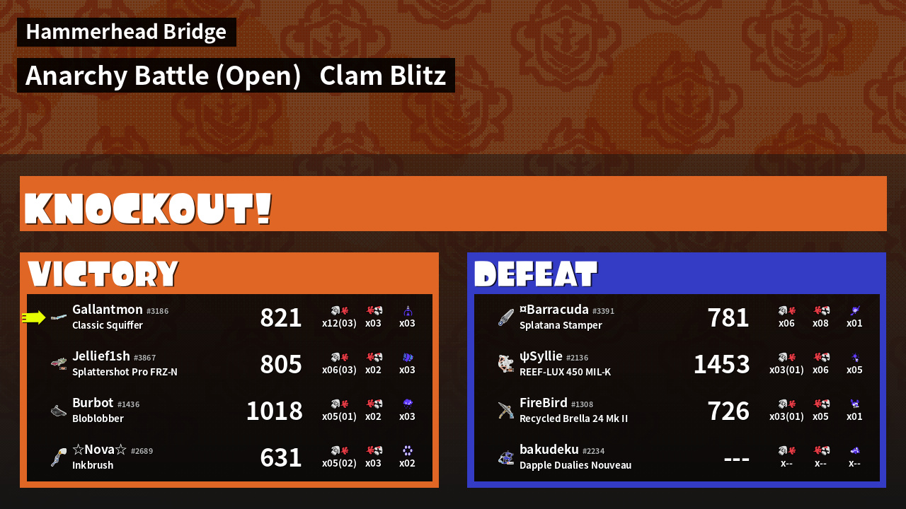| Mode | Clam Blitz - Anarchy Battle (Open) | ||