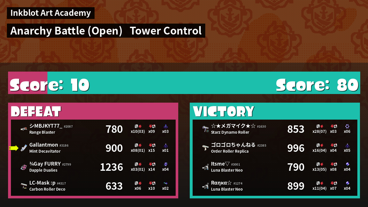 | Mode | Tower Control - Anarchy Battle (Open) | ||