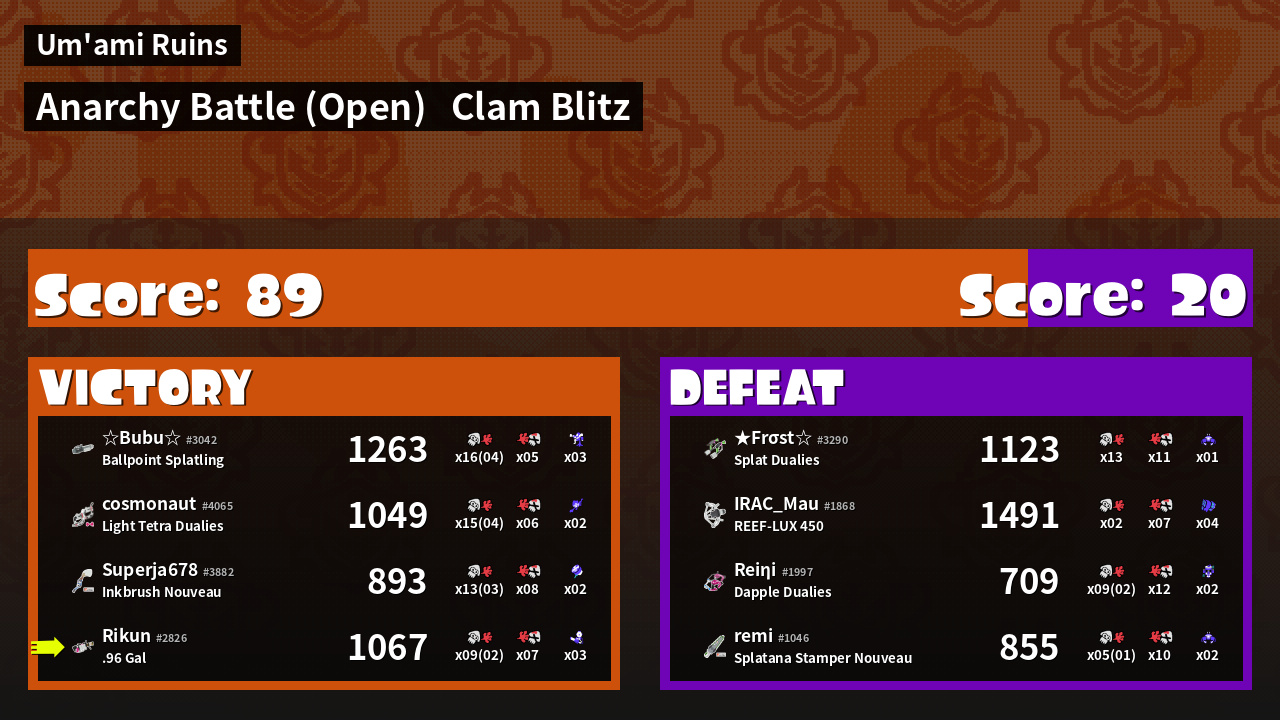 | Mode | Clam Blitz - Anarchy Battle (Open) | ||