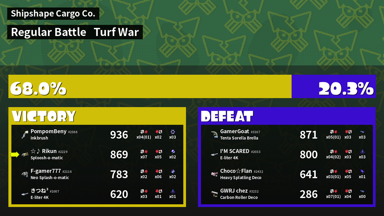 | Mode | Turf War - Regular Battle | ||