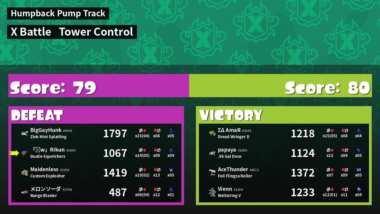 | Medals | #1 Super Jump Spot #1 Splat Assister #1 Checkpoint Breaker | ||