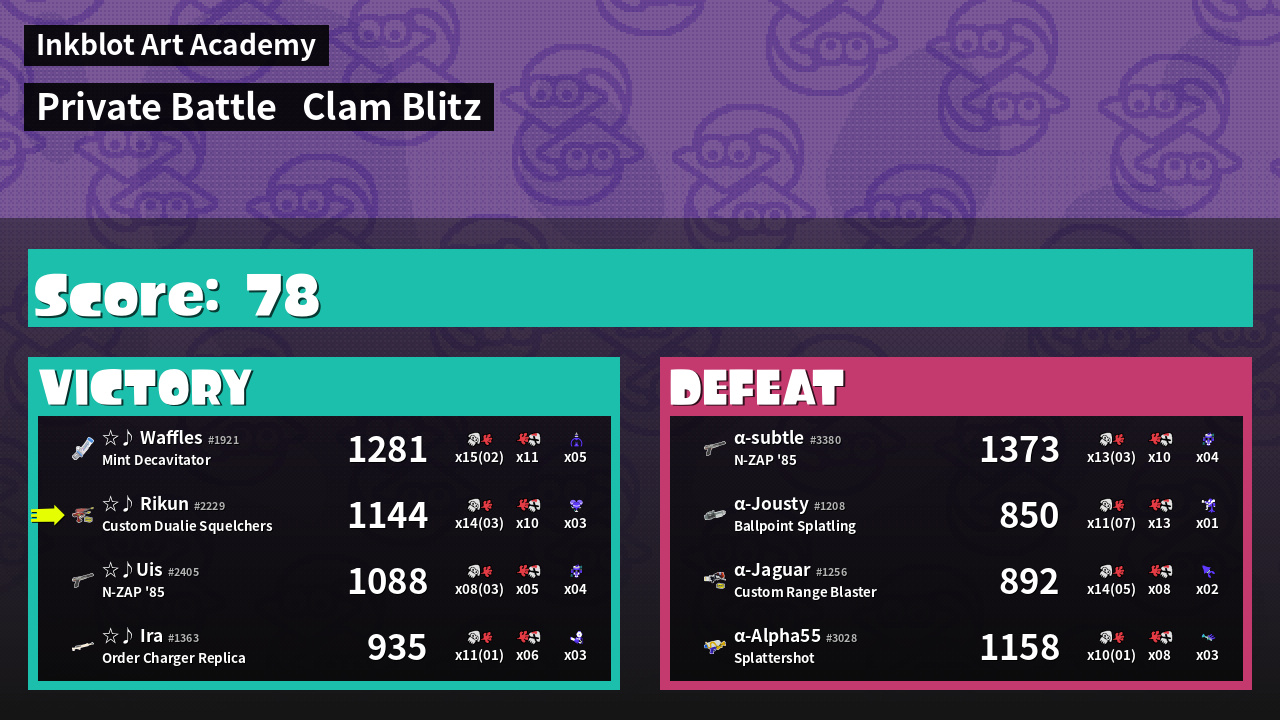 Kills / Deaths | 11 + 3 / 10 > Kill Ratio: 1.10 | ||