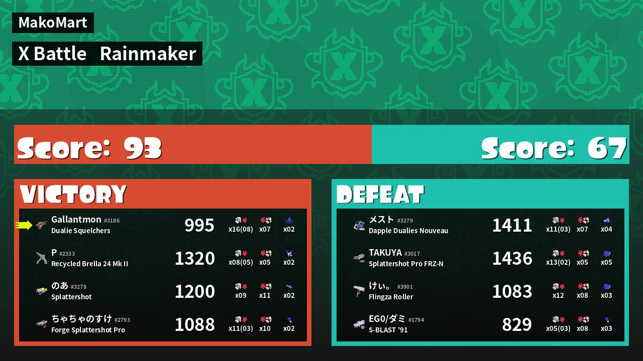 | Medals | #1 Overall Splatter #1 Popular Target #1 Splat Assister | ||