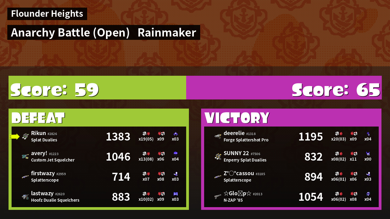 | Mode | Rainmaker - Anarchy Battle (Open) | ||