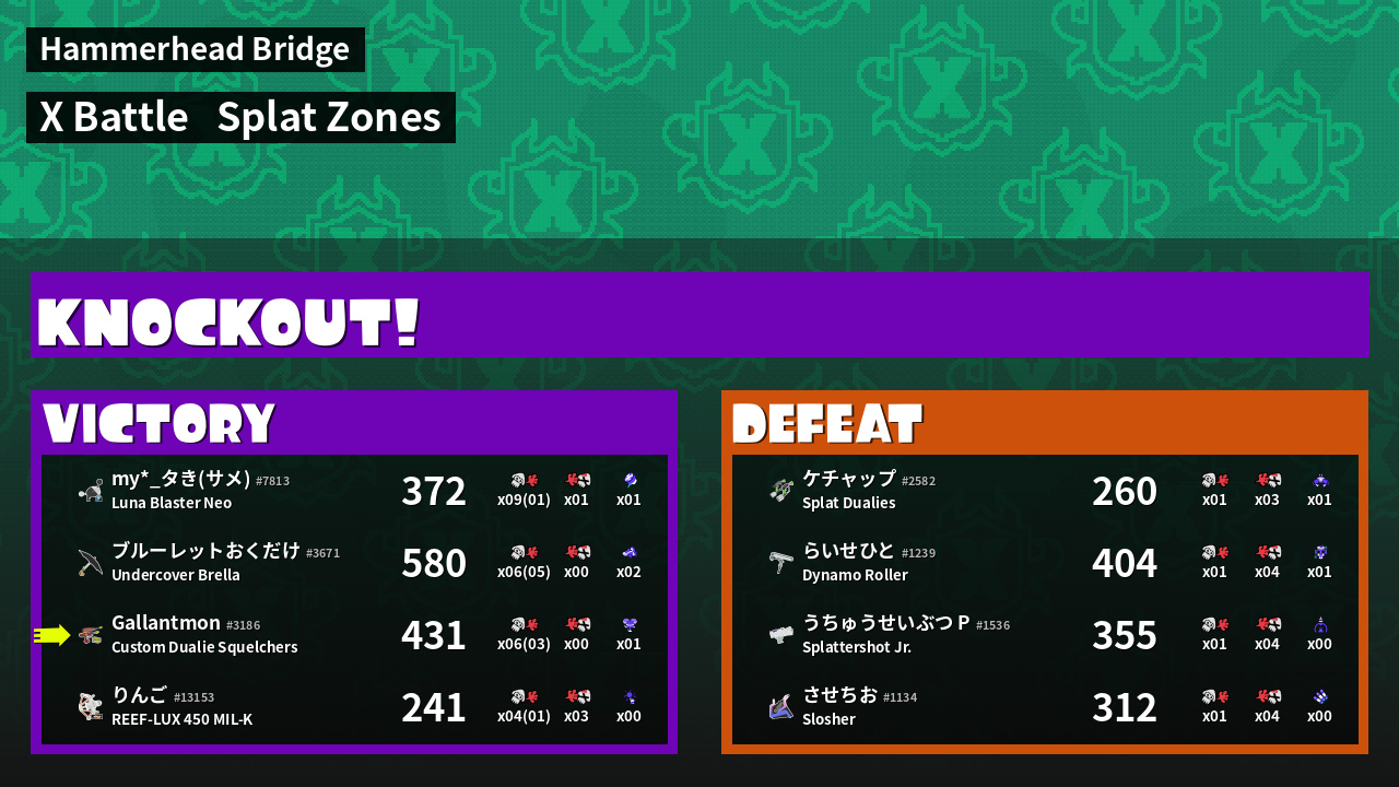 | Mode | Splat Zones - X Battle | ||