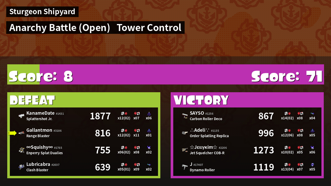 | Mode | Tower Control - Anarchy Battle (Open) | ||