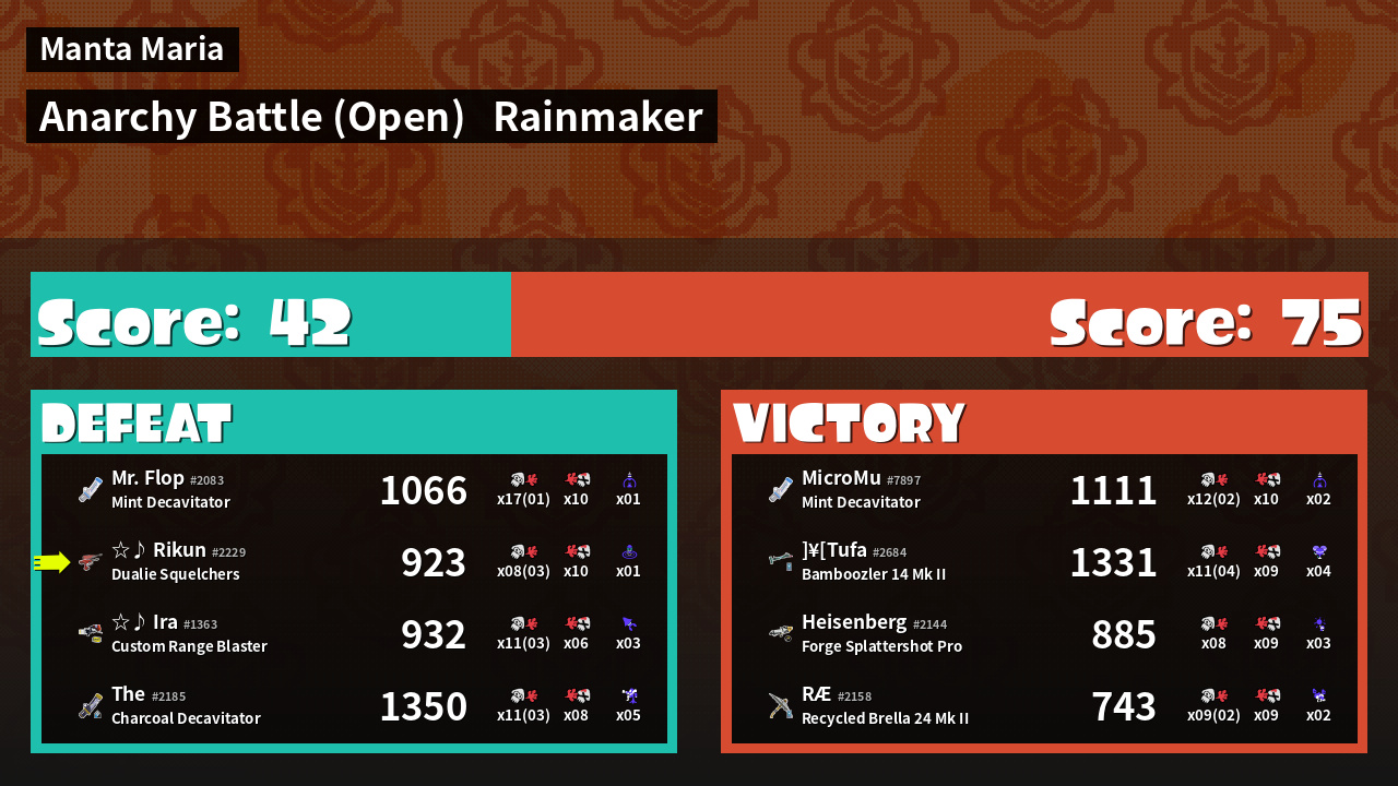 | Mode | Rainmaker - Anarchy Battle (Open) | ||