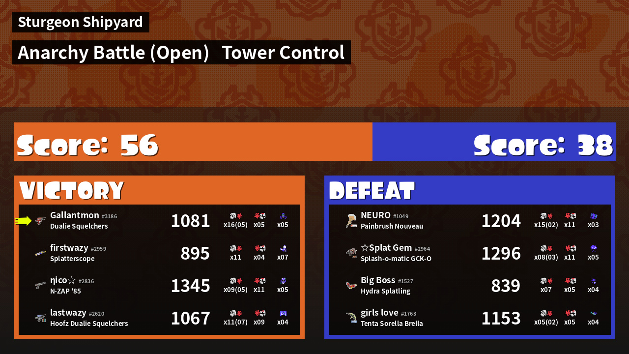 | Mode | Tower Control - Anarchy Battle (Open) | ||