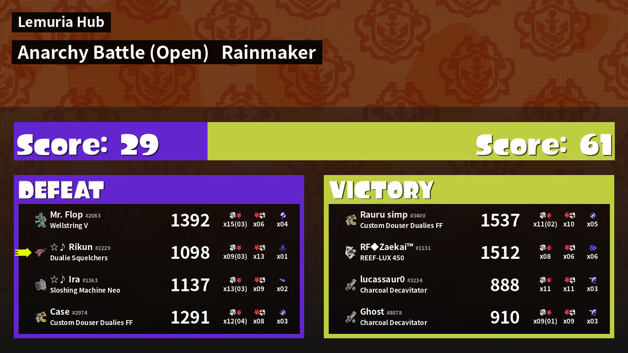 Kills / Deaths | 6 + 3 / 13 < Kill Ratio: 0.46 | ||
