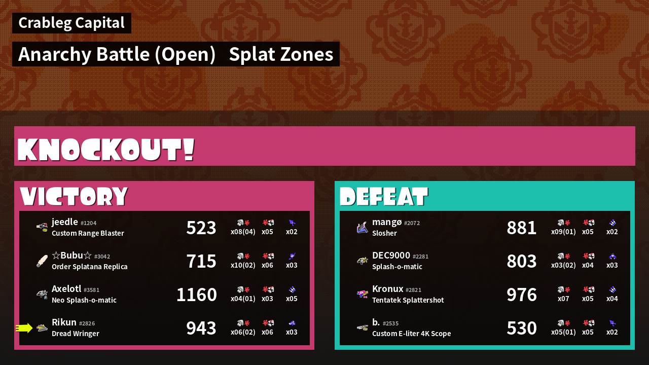 Name | Weapon | Inked | ![]() |