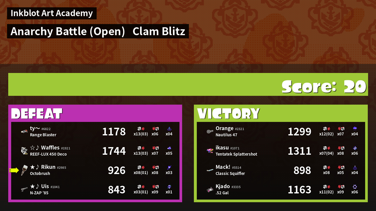Name | Weapon | Inked | ![]() |