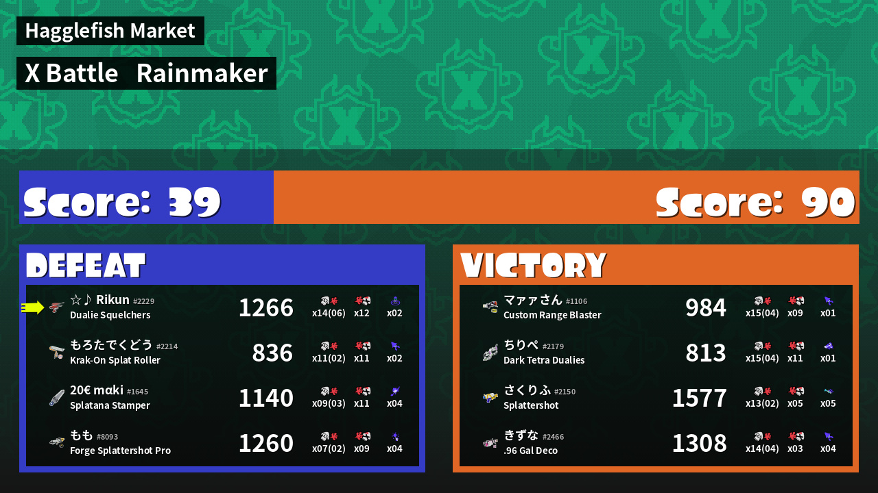 | Mode | Rainmaker - X Battle | ||