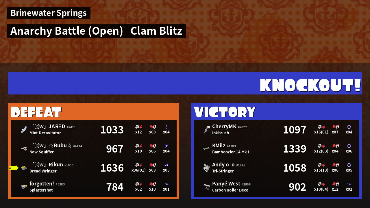 | Mode | Clam Blitz - Anarchy Battle (Open) | ||