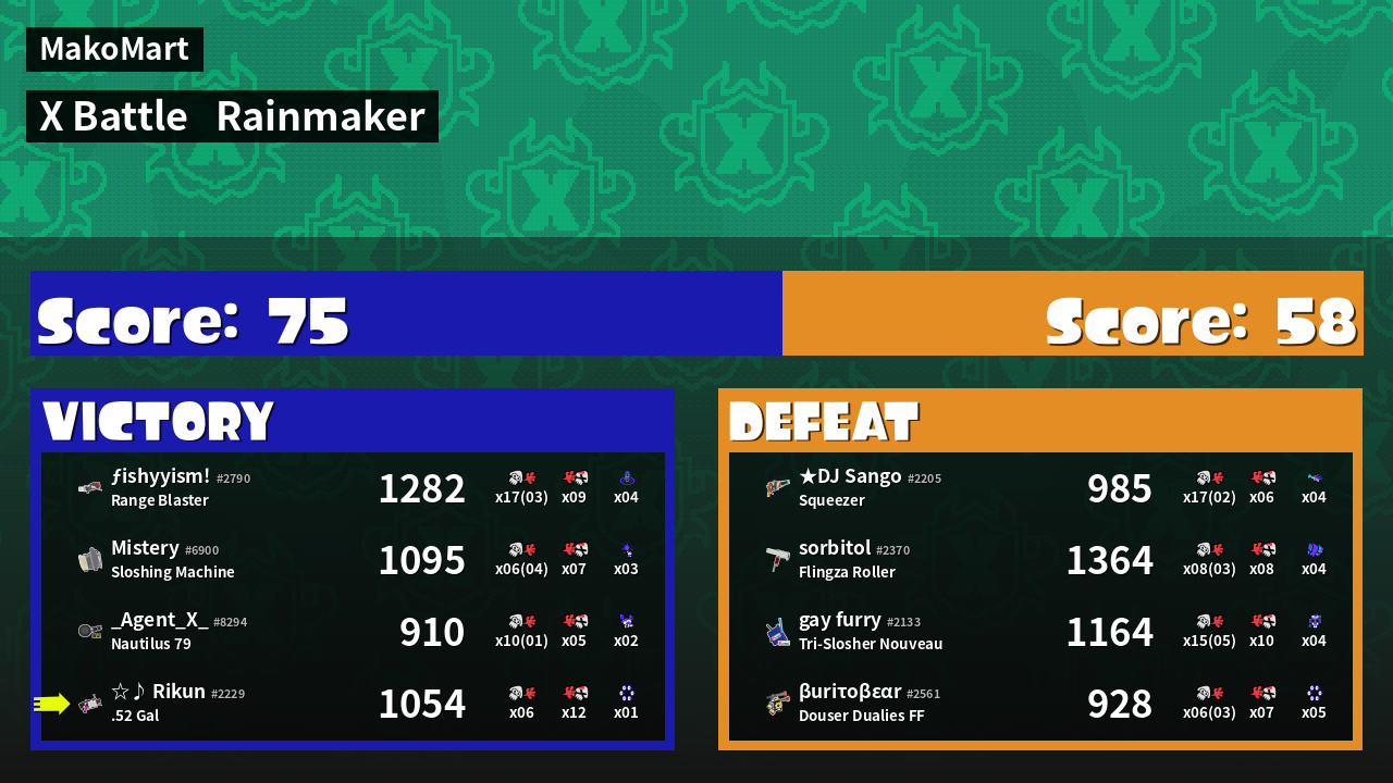 | Mode | Rainmaker - X Battle | ||