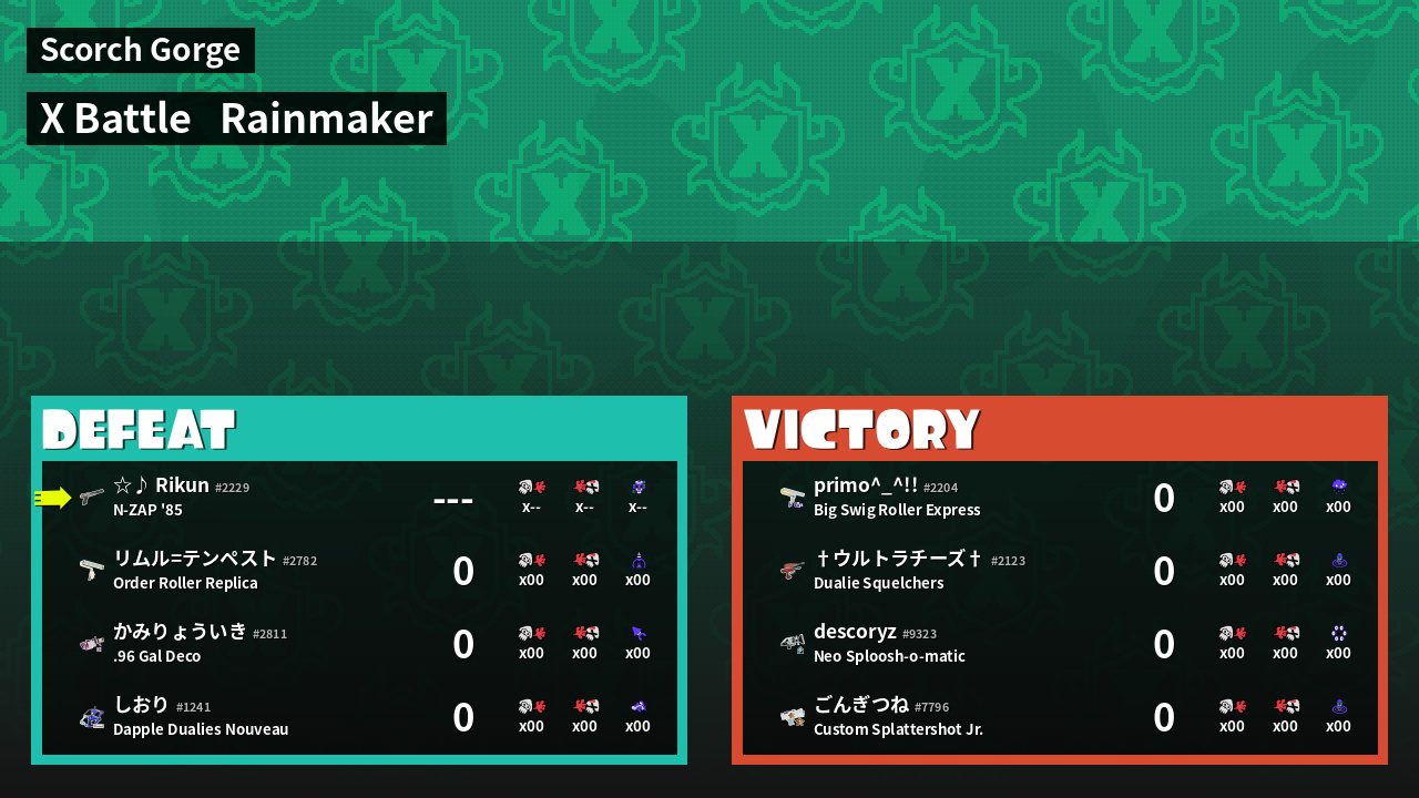 | Mode | Rainmaker - X Battle | ||