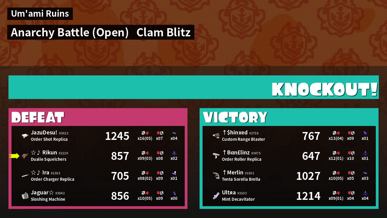 | Mode | Clam Blitz - Anarchy Battle (Open) | ||