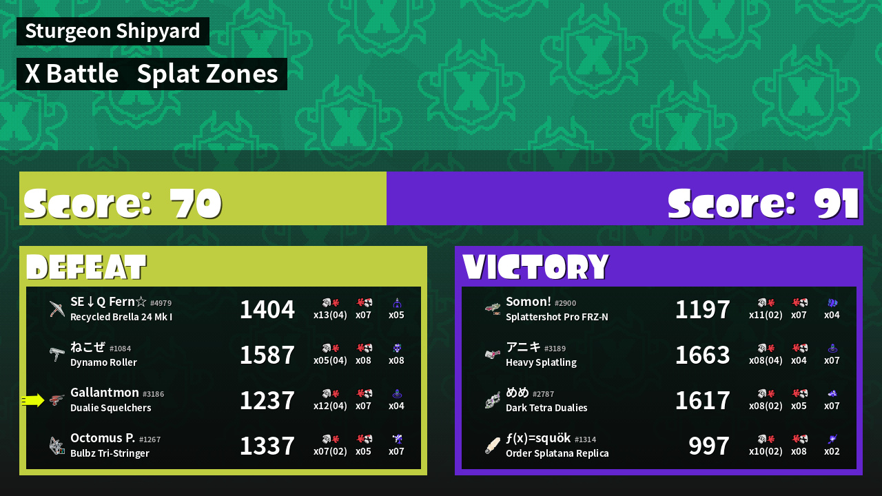 | Mode | Splat Zones - X Battle | ||