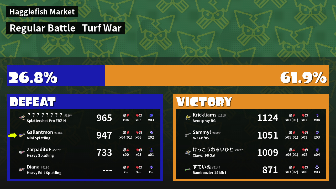 | Medals | #1 Overall Splatter #1 Popular Target #1 Splat Assister | ||