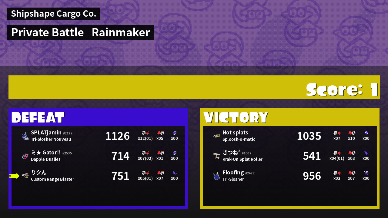 | Medals | #1 Popular Target #2 Turf Inker #2 Splat Assister | ||