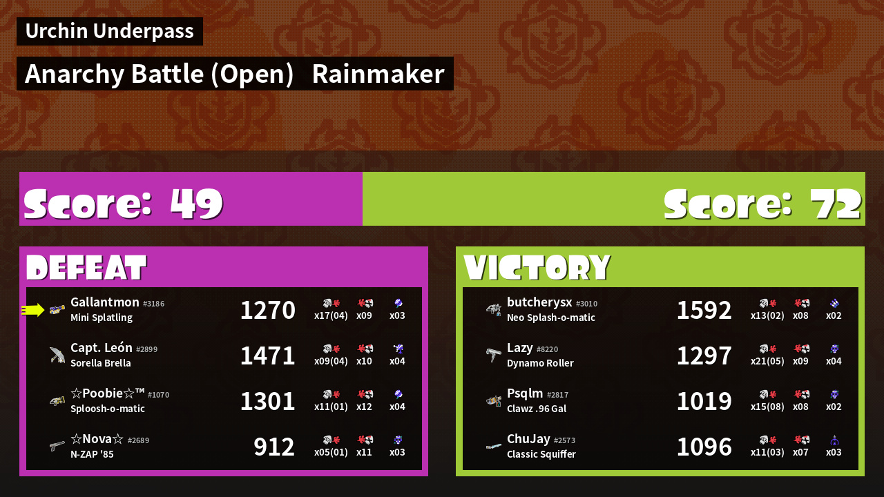 | Mode | Rainmaker - Anarchy Battle (Open) | ||