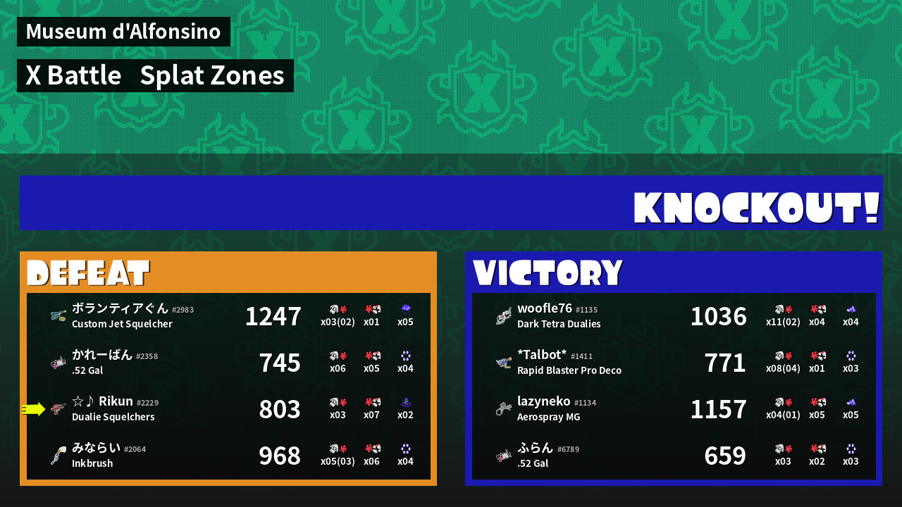 | Mode | Splat Zones - X Battle | ||