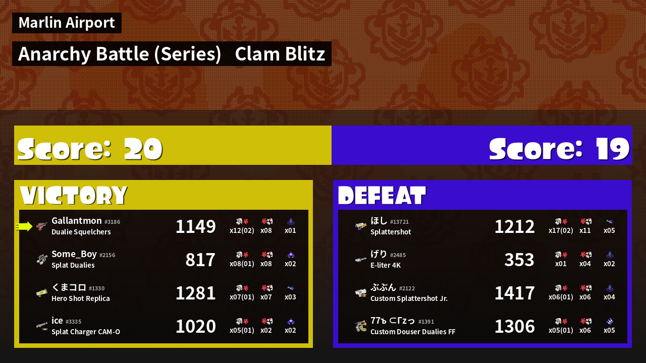 | Mode | Clam Blitz - Anarchy Battle (Series) | ||