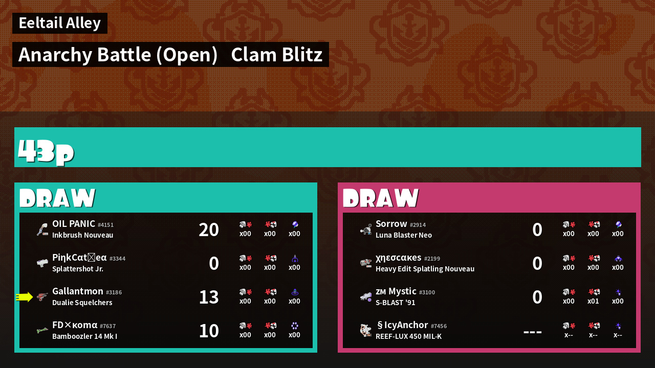 | Mode | Clam Blitz - Anarchy Battle (Open) | ||