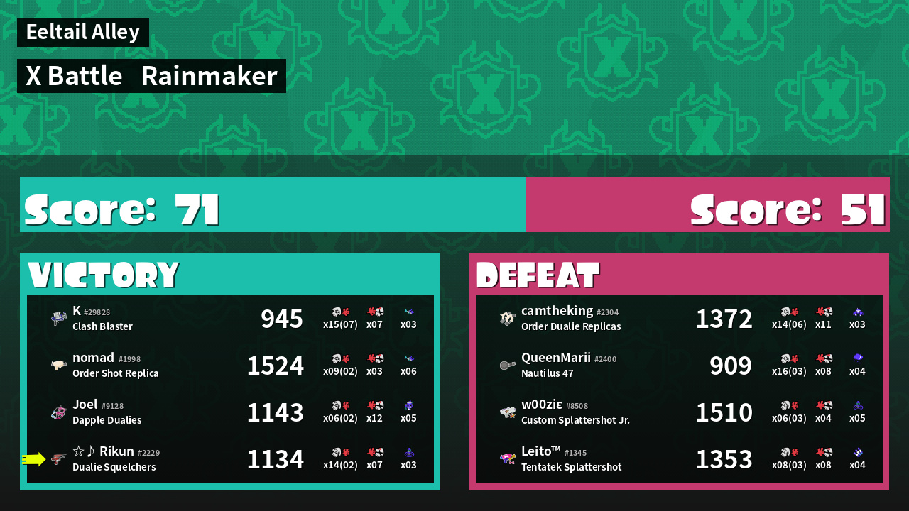 Kills / Deaths | 12 + 2 / 7 > Kill Ratio: 1.71 | ||