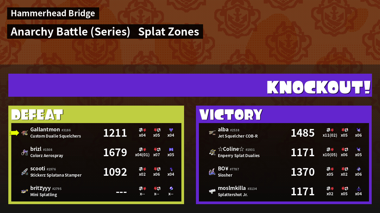 | Mode | Splat Zones - Anarchy Battle (Series) | ||