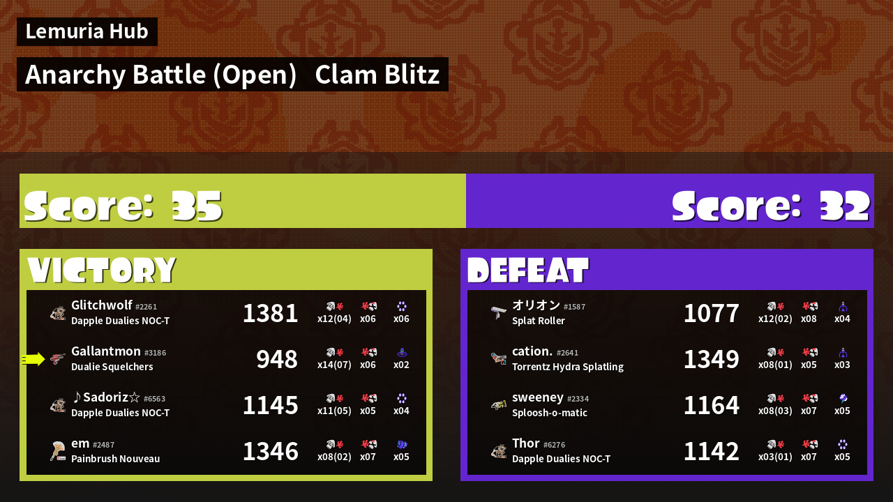 | Mode | Clam Blitz - Anarchy Battle (Open) | ||