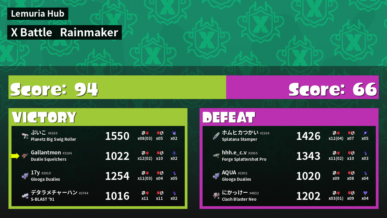 | Medals | #1 Overall Splatter #1 Popular Target #1 Rainmaker Stopper | ||
