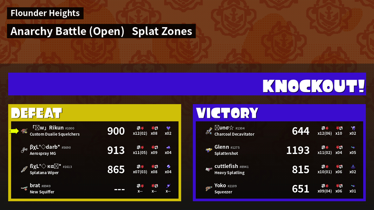 | Mode | Splat Zones - Anarchy Battle (Open) | ||