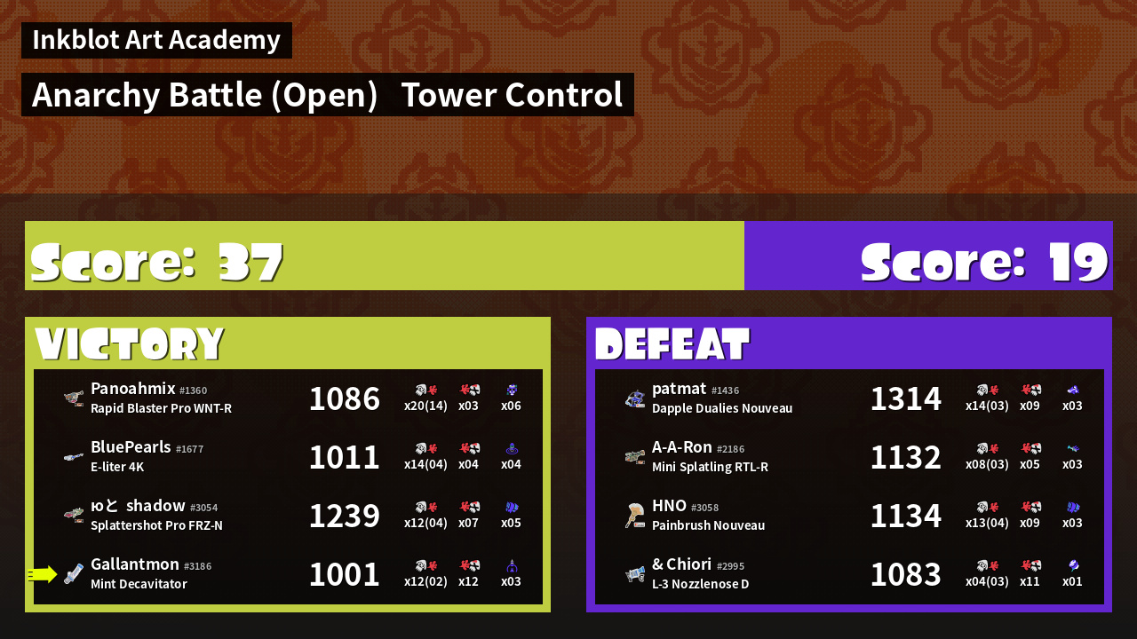 | Mode |    Tower Control -   Anarchy Battle (Open) | ||