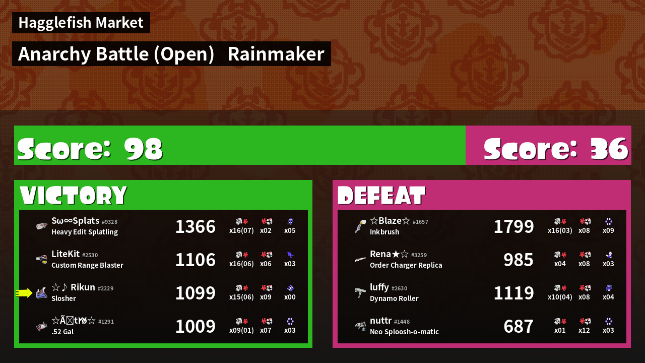 Kills / Deaths | 9 + 6 / 9 = Kill Ratio: 1.00 | ||
