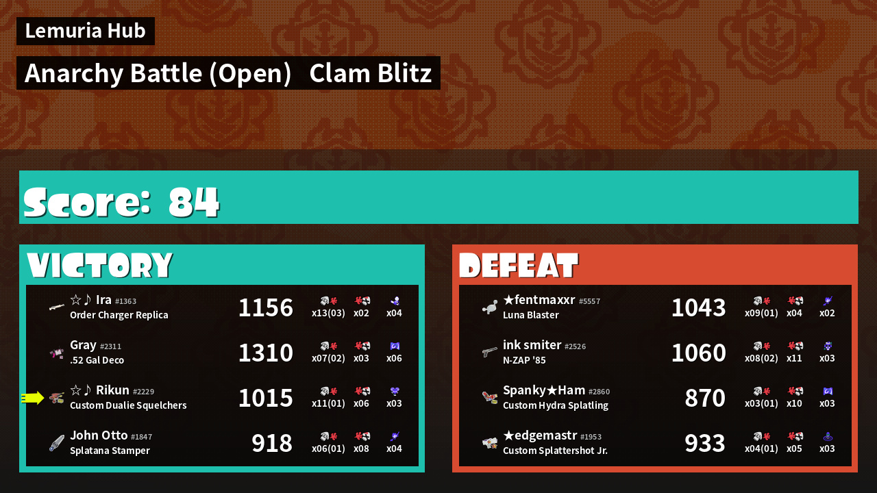 | Mode | Clam Blitz - Anarchy Battle (Open) | ||